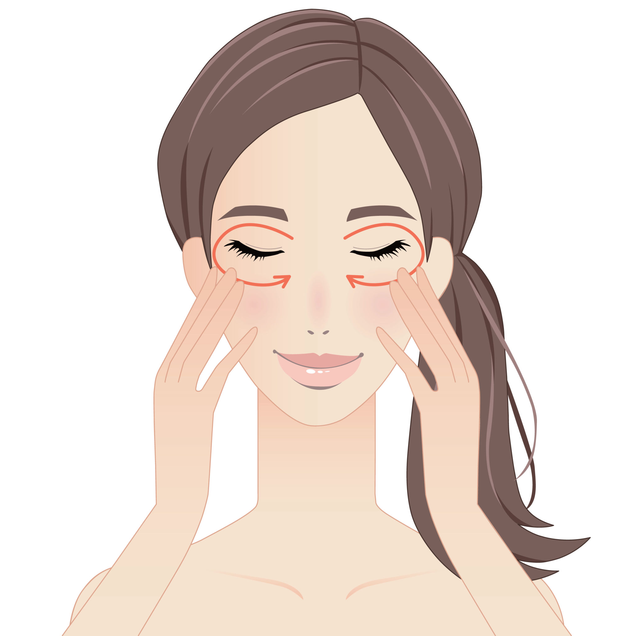 When applying your anti aging eye cream, massage the three "Eye-Brightening" points: Chengqi, Sibai, and Juliao. Located in a vertical line from under your pupil down to the side of the nose, this sequence stimulates deep facial muscles to combat gravitational sagging.